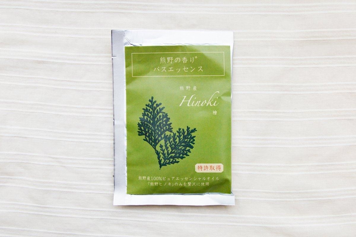 熊野産ヒノキ」を使ったバスエッセンス(粉末入浴料)です。