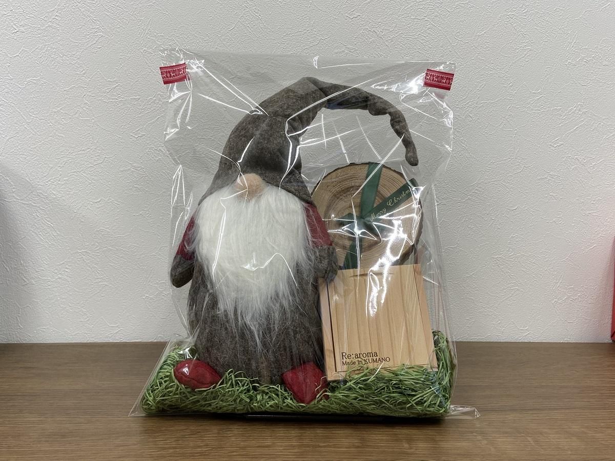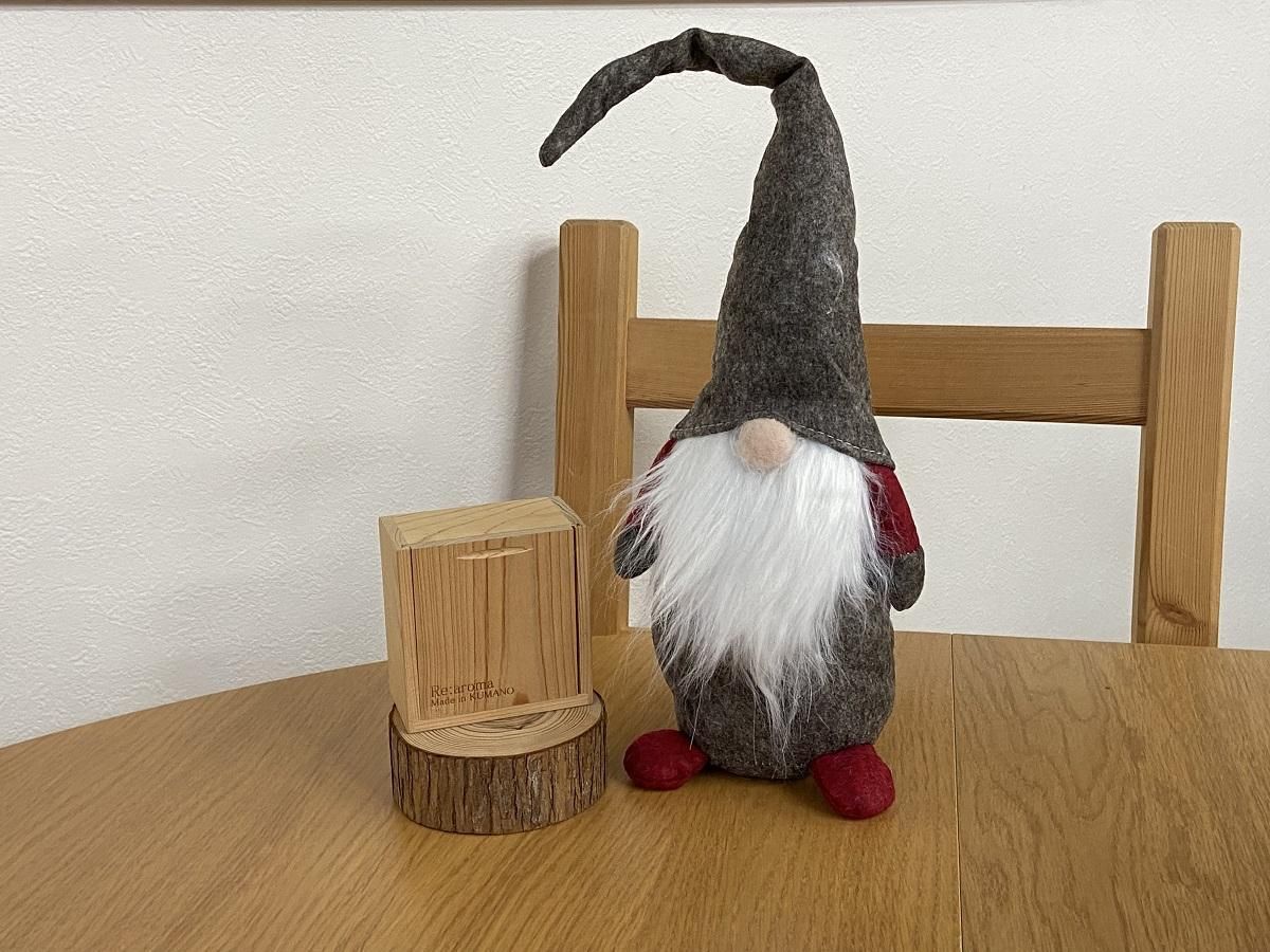 伐りかぶもついているので、座らせたり、アロマオイルを垂らしたり、いろいろと気分があがる贈り物セットです。